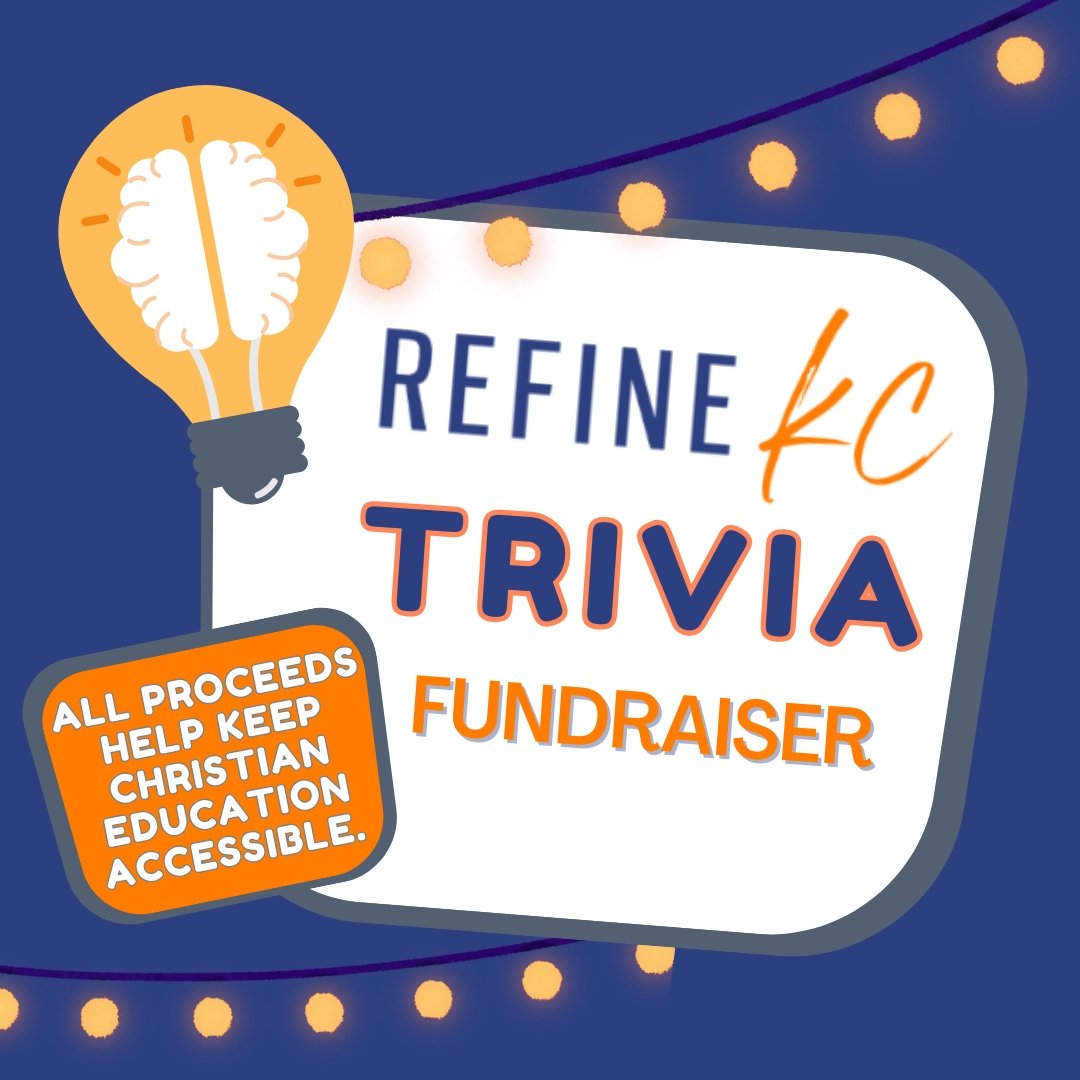 • Refine KC's annual Trivia Fundraiser is a fun evening of trivia, dinner, a silent auction, and prizes. Proceeds from the event help to keep Christian education accessible. Because we strive to keep tuition affordable for all families, community support is crucial to our mission.